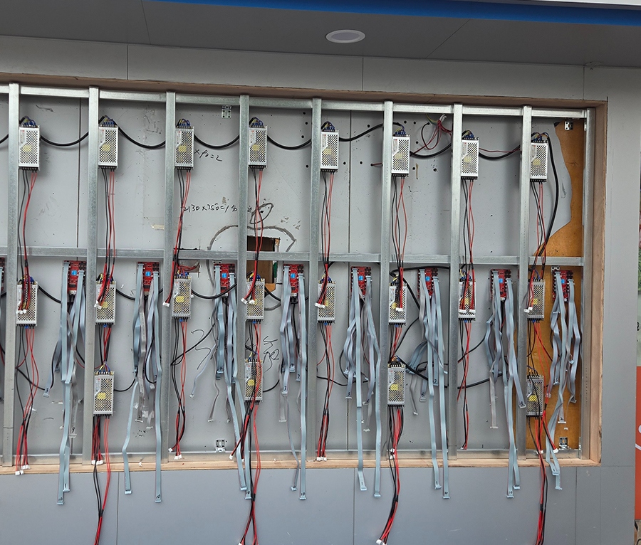 安裝過程中,工程團隊采用"隱蔽式走線+超薄壁掛結構",將15㎡大屏厚度控制在8cm以內,配合鋁合金邊框陽極氧化工藝,與店面輕奢科技風渾然一體。從布線調試到點亮驗收,全程無塵化作業,確保門店正常運營零干擾。